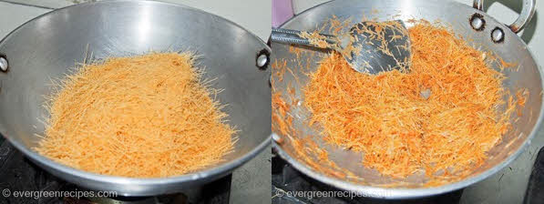 2. Add vermicelli into wok and roast it till light golden brown in color and keep it aside.(Vermicelli roast very quick so be careful to prevent from burning)
