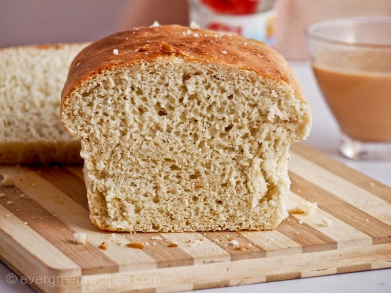 10. Cover the bread mold with aluminum foil, make sure there is some gap between the dough and foil. Bake it in a pre-heated oven at 200C for 15-20 minutes. Then remove the foil from the mold and bake it for another 8-10 minutes till the upper part is light golden brown in the color. Insert the knife in the center of the bread, if it’s comes out clean, it means bread is ready. Let it cool at the room temperature. Slice it and enjoy.