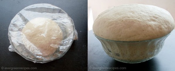 5. Take the dough in a bowl and cover it with transparent polythene or zip lock bag. Keep it in a warm place till the dough gets double in the size. (For about 2-3 hours)
